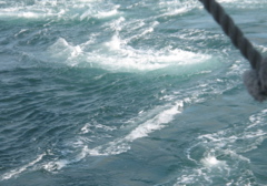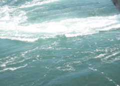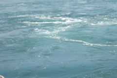 本当に、橋の下だけが白く泡立っていて、それ以外のところは非常に静かな海でした。で、その白く泡立っているあたりに船は進み、渦潮のあたりにさしかかると、舵切ってるせいもあるだろうけど結構揺れました。