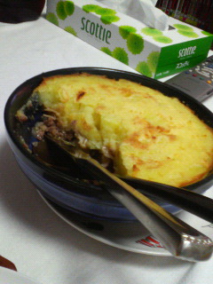 んで、今日帰って来たら、夕ご飯にコテージパイが!!