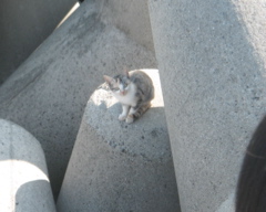 あ、帰り道で寄った海際の、テトラポットの影から出現したねこを激写!!